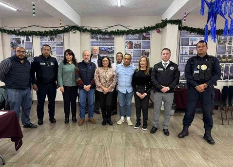 El presidente de la Asociación de Colonos de Tecamachalco, Meni Cohen e integrantes de su Comité de Seguridad, así como la delegada Municipal, Patricia Elton Benhumea y la presidenta del COPACI, Rosa María López Suárez, se reunieron con el director de la Guardia Municipal de Naucalpan, el comisario José Carlos Quezada Román y el Jefe Regional de la Secretaria de Seguridad del Estado de México, comandante Enrique Villa López, para fortalecer los acuerdos y colaboración que han logrado mejorar la seguridad en la zona.