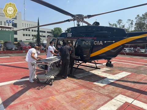 Personal de la Dirección General de Servicios Aéreos “Cóndores” de la Secretaría de Seguridad Ciudadana (SSC) de la Ciudad de México, apoyó en el traslado aéreo a un hospital, de un hombre de 54 años de edad, con el diagnóstico de traumatismo craneoencefálico severo, choque hipovolémico, fractura de pelvis y costillas.